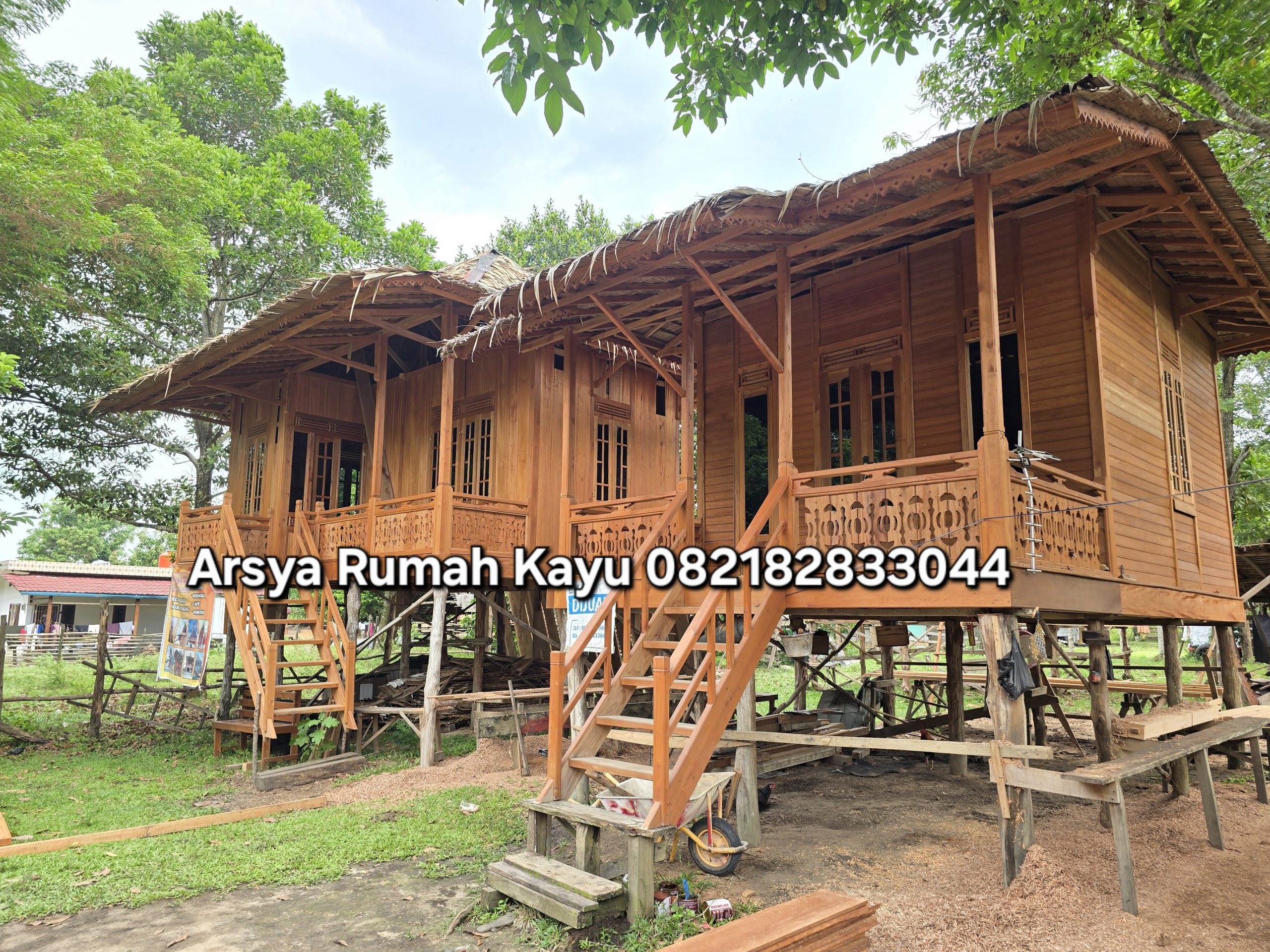 Berbagai proyek rumah kayu telah kami selesaikan dengan hasil yang rapi, kuat, dan sesuai kebutuhan pelanggan. Setiap proyek dikerjakan dengan perhatian pada detail, kualitas material, serta ketepatan desain agar menghasilkan bangunan kayu yang estetis dan tahan lama.